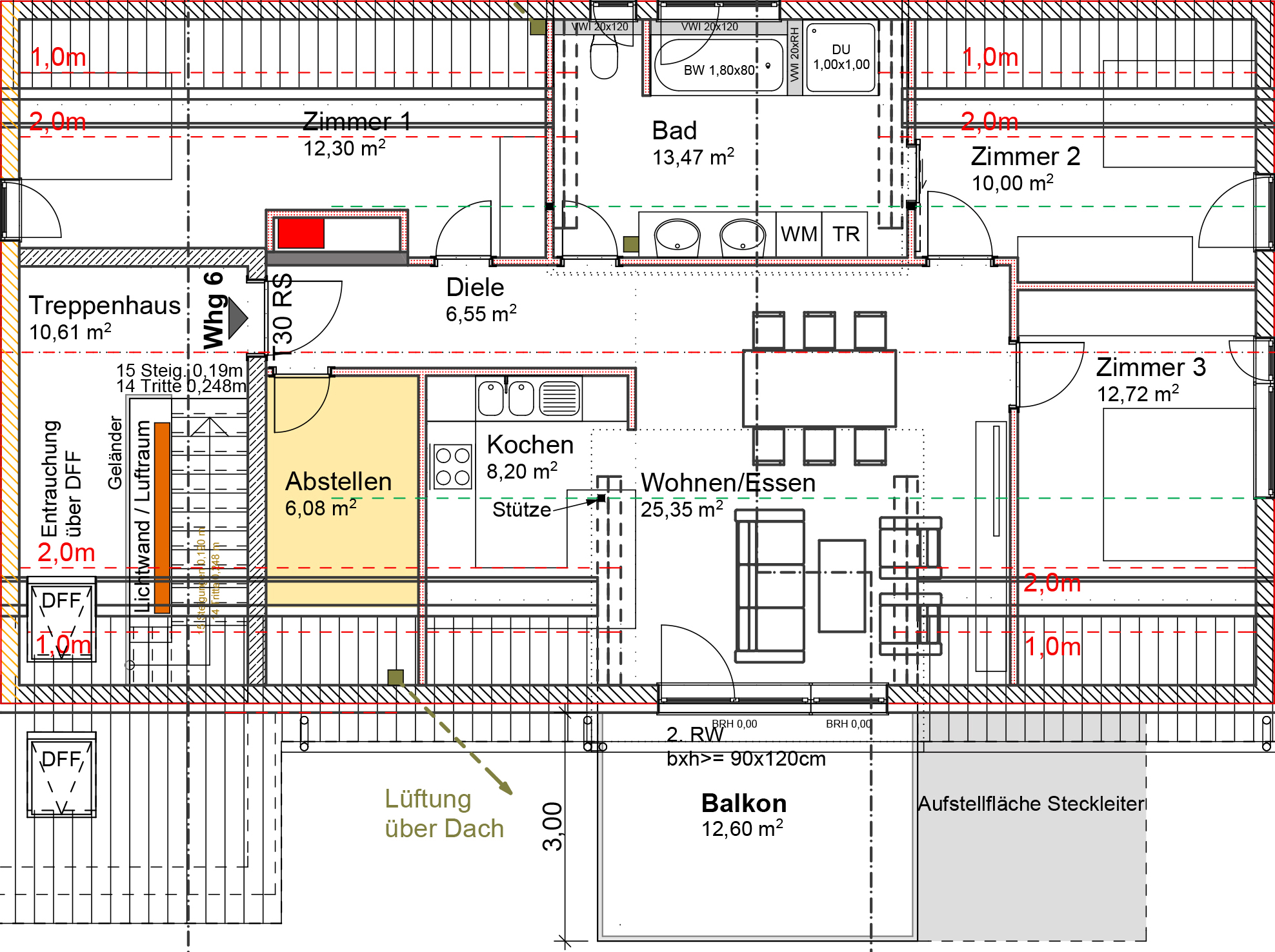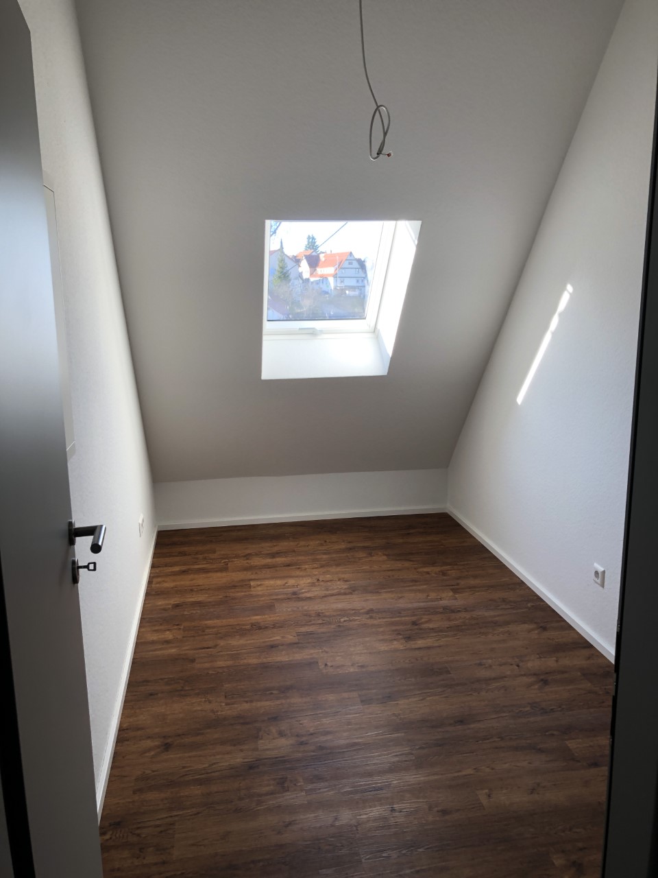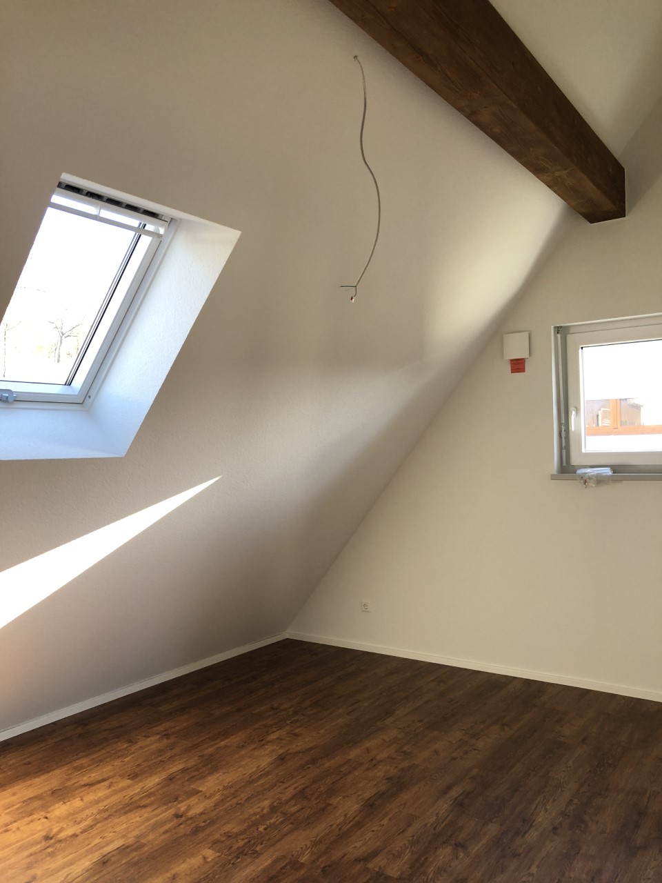 Zwei der drei Schlafzimmer haben ein zusätzliches Dachflächenfenster für viel Licht und einen Kniestock von 1,50m für viel Raum. Die Wohnung hat einen Abstellraum.